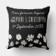 Elegant modern svart-vit fyrkantig kastkudde som personlig minnessak för bröllop, gåva till nygifta eller inflyttningspresent för nya husägare.Lägg till era namn och ett viktigt datum för er, som bröllopsdatum, eller datum för inflyttning i ett nytt hem etc.Elegant vit kalligrafi handskriven skrift och subtila vilda blommor handritat mönster i neutrala nyanser, lätt att matcha i alla miljöer.