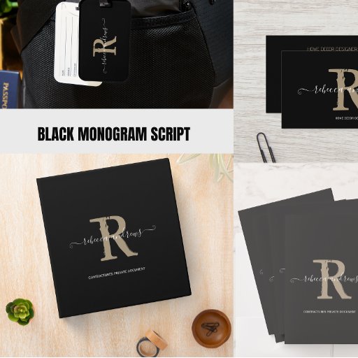 Anpassningsbar Modern Black Monogram Script-handduk för kökshandduk för Namn