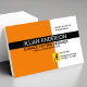 Gör ett djärvt statement med dessa anpassningsbara moderna minimalistiska visitkort. Med en slående orange färgblockdesign har denna eleganta mall anpassningsbara textområden för ditt namn, initialer, titel, slogan, webbplats, adress och telefonnummer. Perfekt för småföretagare, företag, konsulter, designers och entreprenörer, kommer denna banbrytande design säkerställa att din kontaktinformation sticker ut med stil. Anpassa dina kort för att lämna ett varaktigt intryck som speglar ditt professionella varumärke.