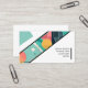Ett modernt och minimalistiskt affärskort med ett djärvt diagonalt rand som delar upp kortet i två delar. Det övre avsnittet fylls med abstraktens geometriska former i vibrerande färg och skapar en synligt intressant och öga-tagande bakgrund. I avsnittet grund finns kontaktinformationen i ett rent teckensnitt med professionell.