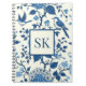 Det här är en vackert designad bärbar dator med spiral-anslutning och anpassningsbar monogram. Täckkonsten är ett klassiskt och elegant blått och vitt blommönster, som påminner om traditionella porslinmönster. Den är försedd med en mängd stiliserade blommor och löv, som är sammanflätade med charmerande fåglar mitt under flygningen och i vila, och framkallar en trädgårdsscen. Formgivningens brännpunkt är en centrerad kvadrat ram som rymmer anpassningsbarnas monogram initialer i ett fet, seriöst typsnitt, vilket antyder att ägaren har en personlig beröring. Den här anteckningsboken skulle vara en perfekt för personlig journalföring, som en tankfull gåva, eller ett tillbehör till snyggten för skolarbete eller kontorsarbete. Monogrammet lägger till en unik och personlig aspekt och skapar det till en skattad post för alla som tar emot den.