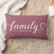 Den moderna och snyggt anpassningsbarna med ländryggen dekorativ kudde har en enkel och minimal "Familjetypografi" som innehåller blomstrande detaljer och hjärtedetaljer. Anpassa versaltexten nedan med ett monogram eller år fastställt. Färgen kring vin och ro kan ändras.