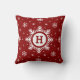 Anpassningsbarnas monogram julkudde. Personligens röda kudde med vit snöflingor. Stor snöflumma i mitten av kudde där du kan lägga till din första. Unik kudde för juleskretsar - personlig med ditt monogram.