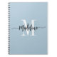 Elegant, modern presentdator med ditt eget namn och monogram i en handskriven kalligrafdesign i minimalistisk dammistblått och svart, denna typografidrivna design ger en underbar gåva till medarbetare, lärare, tränare, flickvänner, pojkvänner, fruar, döttrar eller andra arbets- eller familjemedlemmar! Underbar för kontoret eller hemdekoren. Den här chicen gör bok en roligt, snyggt närvarande för vilken födelsedag, bröllop eller möhippa som helst!