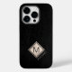 Elegant lyxmankulin exklusiv ser ut iphone case med en enkel, minimalistisk monogrambakgrund, brev och namn över ett svart läderutseende (TRINTED). Perfekt för använda av professionell för företag eller som gåva till en man.