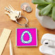 Anpassningsbar Monogram O Keychain, Ditsy-Blommöns Fyrkantig Silverfärgad Nyckelring