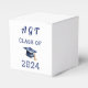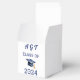 Anpassa monogrammet för studenten och tre brev på dessa partigrupper från 2024. Lägg till söta treter eller andra godis i lådan för en roligt för att hedra din speciella student-dag. Blåtext, vit bakgrund och blå studentmössa med guld-tassel.