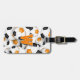 Det här fotbollslaget färg bagagetaggen innehåller bilden av ett kluster av varierad storlek orange, svartvita fotbollar på framsidan - anpassa med idrottsmannens monogram på baksidan av adress och på framsidan - av katz_d_zynes