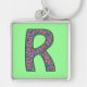 Anpassningsbar Monogram R Keychain, Ditsy-Blommöns Fyrkantig Silverfärgad Nyckelring