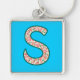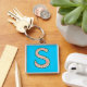 Anpassningsbar Monogram S Keychain, Ditsy-Blommöns Fyrkantig Silverfärgad Nyckelring