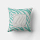 Anpassningsbar Monogram Teal Aqua Blue Zebra rände Kudde
