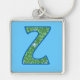 Anpassningsbar Monogram Z Keychain, Ditsy-Blommöns Fyrkantig Silverfärgad Nyckelring