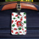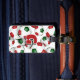 Det här fotbolls-temat-bagagetaggen trycks på framsidan med bilden av ett kluster med olika storleka rött-, grönt- och vita fotbollar - anpassa med idrottsmannens monogram på framsidan och adress på baksidan - av katz_d_zynes