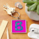 Anpassningsbar, monogrammed nyckelkedja, blått Blo Fyrkantig Silverfärgad Nyckelring