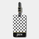 Den här vita bagagetaggen har en svart polka punkt mönster. Anpassa bagaget med ditt monogram, som är under två faux guld linjer. Faux guld linjer är en konstnärlig återgivning (ingen guld på produkten).