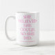 Med den här anpassningsbarna firade hon sin styrka, sin ambition och sin själ. "Hon trodde att hon kunde, så gjorde hon" motiverade mugg. Vare sig det är för din bästa vän, dotter, mamma, medarbetare eller nyligen student, så inspirerar det här kraftfulla kaffet kopp med varje steg. Anpassa med ett namn eller ett speciellt datum för att göra det till ett verkligt unikt datum. En tankfull gåva till födelsedagar, studenten, befordringar eller tillfälle som vill ha en liten flickmakt och mycket kaffe.