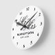 Anpassningsbar Mr. och Mrs. Newlyweds bröllop presentklocka. Elegantens skripttypografimall med familj namn och datum för giftermål. Klassi presenter för ny gifta par eller brud och groom. Chicens svarta och vita dekorfärg för hemmet. Personligens dekanter för unikt kök, kontor, vardagsrum, sovrum osv. Lägg till ditt eget etablerade år och efternamn. Anpassadet färg.