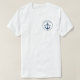 Anpassningsbarnas nautisk skjortdesign har en enkel snyggt marin stil-design med blå kust på framsidan och baksidan med ankaraccent och välkomstmeddelande på baksidan. Anpassa anpassningsbarna till namn på båten, båtägaren/kaptenen, platsen eller annan föredragen ordalydelse. Det är möjligt att ändra marinblå färg.