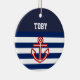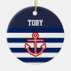 Anpassningsbar Nautical Navy White Rand Julgransprydnad Keramik