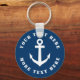 Anpassningsbar nautisk ankarkedja för båtkapten. Ankardesign för marin blå och vit frakt. Nyckelring med rundknappar för sjöman, skeppare, kapten, förste man osv. Tur presentidé för manar och kvinnor som kärlek seglar eller båtar. Lägg till ditt eget efternamn, båt namn, tack för ditt budskap osv. Och trevlig som festtjänst för gäster på semester bröllopet.