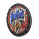 En roligt New York City inspirerade till ritbord! Underbar för att spela traditionella spel, för att skapar nya egna spel eller som en djärv unik visning. Har en anpassningsbar av New York City-text, tegelväggens bakgrund och färgstänk. Njut!