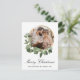 Anpassa det här vykortet för Helgdag och ett speciellt bröllop-foto från speciella dag. Modern och elegant andedräkt ram med grönt löv och vita blommor omger foto, anpassade och enkel att använda. Redigera texten "Från New Mr and Mrs" med ditt efternamn, ändra det speciella budskapet på baksidan och returadressen. Med dem alla i God jul och behålla går kontakten med gäster, familj och vänner i bröllop.