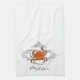 Anpassningsbar Flourish Crab Kitchen Towel - Anpassa med ditt initiala och namn. Mörk, grått och matchningar blomstrar. Crab är orange röd.