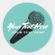 Mall för mikrofonbildklistermärken med vektordesign för logotyp. Personligen föredrar klistermärken eller kuvertförseglare. Professionell som lämpar sig för sångare, sångare, vocal träning, musikindustri, ljud-tekniker, musiker, artister, företagshögtalare, stående komiker, , expert på audio, dj, deejay, diskjockey, underhållare, ljud ingenjör, producent, scenbyggare, röstinspelning, radiovärd, intervjuare, journalist, nyhetsreporter, elektronikspecialist, underhållning och andra liknande arbeten eller arbeten. Klassen svart och vit isolerad mikrosikon med eget namn och färg i bakgrunden. Skapa dina egna unika, runda klistermärken för din professionell - butik, kontor, studio, föreställningar, giger, chef, bröllopsfest, evenemang osv. Modern grafisk ikon med skripttypografi av snyggtens elegant. Turcoise blue eller anpassningsbar färg bakgrund.