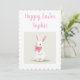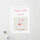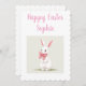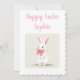 Anpassa till mottagarens namn. En vit Påskhare med en söt rosa båge på ett vikt kort. Underbar för barn och gigantiskt stilar.