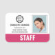 Ge din professionell ser ut med en märkbar anställd namn bricka. Den här redigerbara mallen kan vara personlig med logotypen, profilfotot, namn, jobbtiteln och företaget namn. Perfekt för att skapa en sammanhängande varumärkesupplevelse eller helt enkelt skapar ditt team att framhäva är denna högkvalitativa märkre perfekt för kundrelaterade roller och företagsinställningar - från företagskonsulter och detaljhandelsbutiker till medicinska professioneller, kontorspersonal, konferensgrupper, företagshändelser med mera. Märkre med anpassade namn bygger varumärkets identitet och lägger till en professionell vid varje uniform. Finns med en magnetisk förslutning eller en traditionell säkerhetstapp på baksidan. Färg: rosa och vitt.