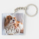 Fira ditt älskade husdjur med den här vackra, moderna anpassningsbarnas fotomakedja. Det är perfekten till behålla av hund, katten eller något djur som ligger nära ditt hjärta. Den här nyckelkedjan är fullt anpassade. Ladda bara upp ditt favoritfoto av hög kvalitet och lägg till ditt sällskapsdators namn i det elegant vita skriptteckensnittet för att skapa en keepy av typen en av ett slag. Det hållbara akrylmaterialet säkerställer att ditt värdefulla foto skyddas medan det tittar underbart på nycklarna eller väskan.