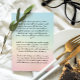En övertoningsbakgrund med blå och rosa med vita liljor och ett foto.