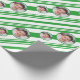 Anpassningsbar Photo Anpassningsbar Logotyp Grönt och Vit Rand Wrapping Papper. Fototips: Den här mallen fungerar bättre med fyrkantiga, nära fyrkantiga eller rektangulära foton med huvudbilden nära fotots mittpunkt.