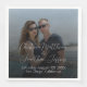 Det här moderna bröllop- eller förlovningsfest-klistermärket innehåller ett foto av paret över bakgrunden som du kan ersätta med ett eget foto av anpassningsbarna. En svart övertoning sträcker sig från grund-delen.