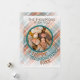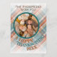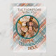Unikt, klassiskt, söt och dekorativt hälsningskort för Julhelg. Med roligt vill Happy thanksgiving på en mysigt, varm färgstark tårblått och orange röd färgad plaid tartan mönster. Med rustiskt trä tittar du ett öppet prydnadsföremål som anpassar eller anpassar sig med ditt eget beundransvärda foto, och namn eller familjen namn ovanför det.