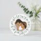 Vänner och familj i inbjudan till bröllop med den här eleganten eukalyptus grey & anpassningsbar-fotot bröllop 'Save the Date'-rundkort. De här eukalyptus bröllop-korten har en botanisk grön krans för att visa ditt favoritfoto och anpassa sig efter namn och bröllop. Se eucalyptus bröllop-samlingen för matchande bröllopsinbjudningar, bröllopsfavoriter och keepsakes. COPYRIGHT © 2020 Judy Burrows, Black Hund Art - Med alla Höger reserverade. Eucalyptus Greenery Photo Bröllop spara datum Helgdag Card