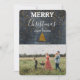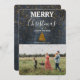 En vacker julkortsdesign för familjen som kan anpassas med din text och ditt familjefoto. Golden Julafton snö överlappar den rustiska kritan och ditt foto.