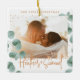 Skapa din egen bröllop keepsaké med den här Eleganten Grey Merry och Married Photo Helgdag Ceramic Ornament. Den här moderna och chic utformningen har eucalyptus grenar vattenfärgsillustrationer och en snyggt faux guld foil geometric foto ram. Lägg till två foto på framsidan och baksidan, nytt namn och en personlig. Visa hela kärlek med det här, det är en bra anpassningsbar keramisk prydnad. perfekt också som årsdag och förlovning. Din flickvän kommer att kärlek den! Ingen minimiorder.