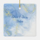 Modern ännu Elegant Blå Guld Swirl-julprydnad för helgdag på favoritfotot på framsidan tillsammans med året. Baksidan har namn och data eller annan information som du vill lägga till. Underbar julklapp för dem du bryr dig om eller för dig själv att antingen minnas din bröllopsdag eller bara ditt favoritfoto på året.