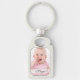 Fin nyckelring med anpassningsbar fotografi och ett halvgenomskinligt vitt band, i grund, för din text. Anpassa bild och den svarta texten, för dig själv eller som en underbar presentidé.