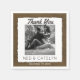 Pappra blöjor med bröllop-fotofoto av Rustic burlap-förlovning-Personlig i vanligt vitt ram med uttorkat utseende kant. Läser Tack i svart skript ovanför fotot och monogrammat namn av brud och stam nedanför med bröllop-datum vid grund. Faux shabby brun bakgrund. Burlap bröllop-blöjor går med landsbyggsbröllop eller bröllop-dekoration i lada, bröllop i utomhusbruk, möhippor, dekorationer för repetitionsmiddagar osv. Obs! Alla bilder skrivs ut. Ingen riktig knäpp eller trasa. Matchning av burlap bröllop-dekanter och mottagnings- eller möhippa- och andra bröllop-utformningar finns i vår Zazzle/angela65-butik.