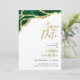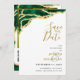 Skapa elegant vit, emerald grönt och guld spara-till-datum-kort som dekorerats med ett agate-stil geode mönster på vit bakgrund. Med mallarna kan du enkelt skriva namn, datum och ställe, webbplats och ladda upp fotot på baksidan. Du kan också lägga till en QR-kod på webbplatsen bröllop - se till att lägga till webbplatsen där innan du beställer så att QR-koden fungerar som den ska.