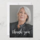På framsidan av denna 70:e födelsedagsinbjudan finns en bild av hedersgästen med ord "tack" i elegantens vita calligraphy-skript överlägg. Med en mörk skärm kan du göra så att texten visas. Anpassa den omvända sidan med ditt personliga meddelande i vit sans serif-teckensnitt och ditt namn i skript på en bakgrund för grönten.