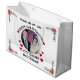 Cute elegant White, Rosa Blommigt, Hearts "Lycklig 25:e Bröllop-årsdagen" med Bröllop Photo och Couple Namn presentsäck designad. Du kan enkelt ändra bild, namn och text efter behov. Du kan också ändra teckensnittsmodell, teckensnitt färg och storlekt teckensnitt om du vill. Klicka på —> "Anpassa" om du vill söka efter verktygen som redigerar. Du kan göra spelar ingen roll du gillar och göra det till din egen. Det är perfekt för bröllop-jubileumsväskan, bröllop-presentväskan osv. för par. Ha roligt och njut!