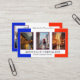 Affärskort med anpassningsbarnas foton med Franskens flagga som bakgrund på framsidan. På baksidan finns utrymme för ett annat foto och även en QR-kodmall. Snygg för en lärare i Franskens språk eller anpassade, till exempel en resebyrå som erbjuder resor till Frankrike.