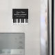 Anpassningsbar piano-lärarlektioner i kylmagnet. Lägg till ditt eget namn och nummer. Svartvit piano nycklar tangentbord med elegant text. Annonsera dina lektioner eller skolan. Marknadsföring material för pianist, pianospelare, musiker, musiklärare, instruktör osv.