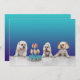 Cupcakes och valpar inbjuder dig till en speciell fest. Tre söta busiga räddningsvalpar som spanar på en karusell med cupcakes på framsidan, blå gradientbakgrund på baksidan. Anpassa med din festinformation.