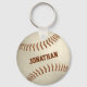 Den här sportiska baseboll nyckelring har en realistisk bild av en baseboll som ser ut som en vintage med enkel baseboll eller en fotbollsspelare i namn - boll och namn är orienterade på en liten vinkel och färg som matchar anpassade som - av katz_d_zynes