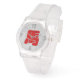 Anpassade Red ideogram of the Horse on papper-cut illustration as bakgrund. Du kan enkelt ändra färg i ideogrammet genom att klicka på anpassningsknappen. Utformning på Silicone Strap Clear watch med unga stil-nummer. Perfekt för det kinesiska nyåret för häst eller födelsedag (människor födda under häståret).