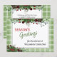 Unikt, klassiskt, trendig, söt och dekorativt företagskort för Helgdag. Cute Glad helg hälsning text och rum som du kan anpassa eller anpassa med ett valfritt meddelande på kortets baksida. Framställd av Burgundy vin röda bär och mörk grönt blad med kransbuketter på en klassliknande grönt och vit plaid tartan gingham mönster bakgrund.